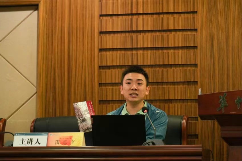 在主持人介绍完活动规则后,《四季芳华桂子山》编委成员田志夕博士为同学们介绍了桂子山校建设历程、校园内植物分布介绍、桂苑十景、宝典使用技巧等,有趣的是,为帮助大家更好的识别植物,他带来了一些捡拾来的树枝做展示,生动形象地为大家讲授分辨植物的技巧,大家听得津津有味,跃跃欲试。